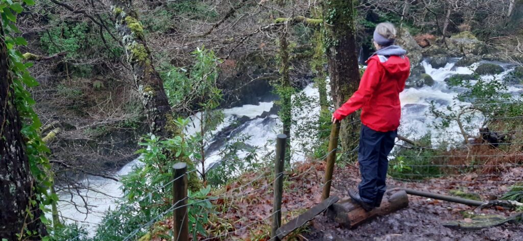 By Sunday morning it was clear the brief weather window was over. Some went home; the Richards drove to Capel Curig and walked along part of the Slate Trail past Swallow Falls in spate. The enjoyed some brief sunshine and a bowl of soup at Plas y Brenin.